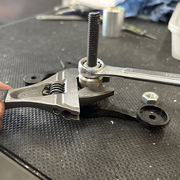 This tool is a variation on our Wind-Out Blind Bearing Puller, adapted to fit the specific requirements of the 6803 idler bearings found on Deviate's Highlander and Claymore bikes.