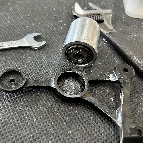 This version of our tool can remove these true blind bearings. It can remove the bearing from both sides of the idler; the one installed on the swing arm and the one in the aluminium spider.