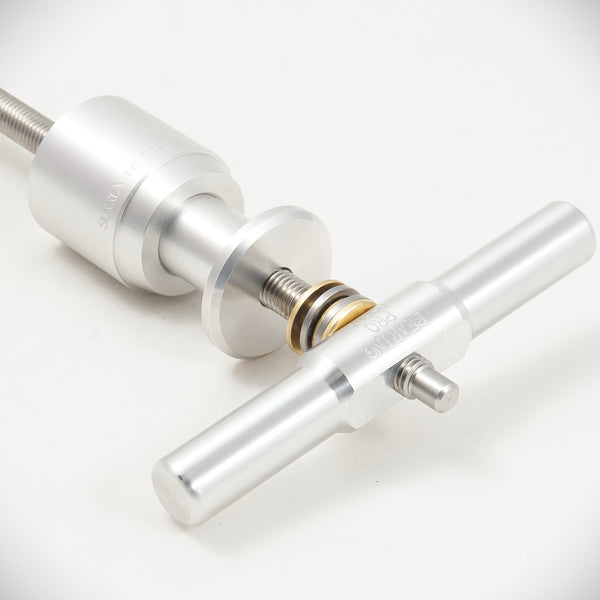 Our Surron Light Bee headset press has two functions; first it can be used to press the angular contact headset bearing races into their cups, and secondly, it can be used to press the bearing race/cup assembly into the LightBee's headtube.