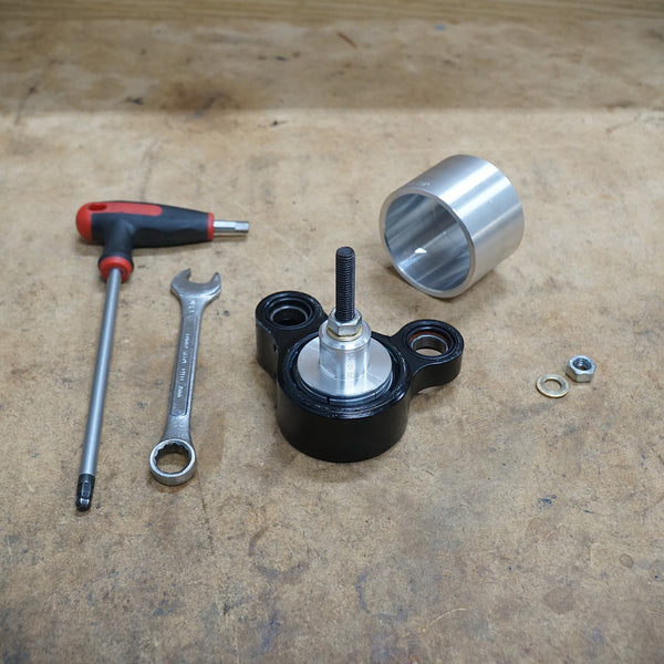 Our Claymore and Highlander kit contains a wind-out blind bearing puller for the large 6808 bearing in the rocker, and a 15x7mm tap-out puller that is suitable for all the 3802 bearings in the all of the other suspension pivots. The tap-out puller can either be tapped out from behind using a hammer and suitable drift, or connected to our optional stainless steel slide hammer.